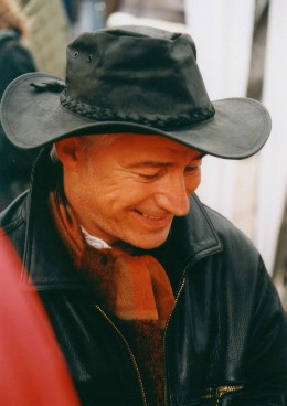 Mit Schlapphut und Freundin im Schlepptau machte er es sich neben den beiden bequem und schrieb seiner ersten Autogramme - doch dieser Zustand hielt nicht lange an und er verschwand für die ersten Rennen in Richtung Rennbahn. Gerry war vor Ort um auf Pferde zu wetten und zu gewinnen! Somit war er erst einmal verschwunden. Ich überzeugte Vreni, doch mal beim SK-Kölsch Stand vorbei zu schauen, denn da wäre es derzeit vielleicht interessanter, und dank Luca schaffte ich dies auch sehr leicht. So machten wir uns also auf den Weg zur anderen Seite des Geländes. Als wir dort ankamen war da erst mal gar nichts los - wir sind sofort durch zu den Jungs und holten uns Autogramme - was sich als sehr praktisch herausstellte: einmal den Namen sagen und von drei Leuten Autogramme bekommen! Das nenne ich einen Service!