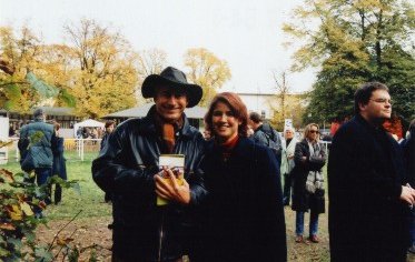Einige Zeit verweilten wir noch bei den Jungs von SK-Kölsch und gerade als wir uns wieder auf den Weg zurück zu den VL'ern machen wollten, wurden wir noch gebremst, denn Gerry kam auf einen Sprung zu Besuch zum SK-Kölsch-Stand um allen die es hören wollten (oder auch nicht) mitzuteilen, dass er soeben eine Wette gewonnen hatte. Vreni und ich nutzen diesen einmaligen Augenblick und machten schnell ein Foto mit unserem Gerry.("Komm mir is langweilig, machen wir schnell ein Foto mit Gerry!") Ja, wir hatten es geschafft, unser Traum war ein Stück war geworden ? ? ?