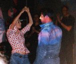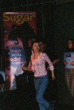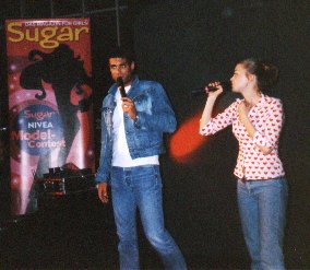 Kurz vor 15 Uhr trafen wir uns vor dem Cinemaxx Colosseum im Prenzlauer Berg. Und dann sind wir auch gleich rein ins Kino und da waren Tausende von jungen Mädels...*gg* Man ist da rein gekommen ohne sich casten zu lassen. Wir haben dann aber auch noch mitgemacht. Da musste man nur einen Fragebogen ausfüllen und ein Foto von sich machen lassen, das hat man da raufgeklebt und dann hat man das an so einem Stand abgegeben...und dafür hat man so ne Tüte voll mit Kosmetikprodukten und einem VL-Button bekommen. Was da alles drin war, dafür lässt man in der Drogerie mindestens 50 DM!!! Als wir dann drin waren, stand da auch Dee! von Popstars, der Choreograph. Ja, wir sind da erstmal so hin und da hat er was erzählt von seinem Tanzcenter, das er jetzt in Berlin eröffnen will, da wollten wir eigentlich Autogramme haben, aber dann sind hinten auf der Bühne Kerstin und Carsten rauf gegangen und dann sind wir auch gleich hingesprintet…Dee war in diesem Moment einfach uninteressant. Wir haben uns dann erstmal ganz nach vorne zur Bühne gedrängelt und Chrissy hat sofort angefangen ganz viele Fotos zu schießen.