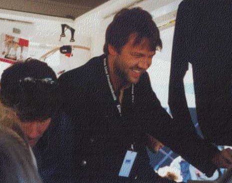 Keine ellenlangen Schlangen. Im Gegenteil. Ich konnte die ganze Stunde über bei ihm bleiben. Denn, natürlich kam ich nicht von ihm los. Das war einfach herrlich! Ich hätte auch nie gedacht, daß ich ihm so nah sein konnte. Und das auch noch so lange. Ich fragte ihn: "Hast Du meinen Brief schon?" Welchen Brief?" Na, den ......" "Ach, DU bist das?" "Ja, aber, diesmal duze ich Dich!" Da hat er lieb gelacht. "Und? Haste ihn schon?" "Ja, den hab ich schon bekommen." Haste Dir mal überlegt?" "Ne, Du, ich hab doch schon jemand, der das für mich macht." "Schade! Ich hab ... schon fertig!" "Ja, echt? Haste schon fertig?" "Ja, also nicht fertig, aber ich bin dran. Aber, wenn Du mal gucken willst, ...heißt......." "Echt? Haste fertig?" "Aber, mir hat das so leid getan, daß St. Pauli verloren hat. Ich hatte Dir extra die Daumen gedrückt!" "Ja, ( schlagartig wurde sein Gesicht sehr traurig ), das stimmt. Oh ja, aber wir haben auch 7:1 gegen Braunschweig gewonnen!" Das sagte er mit stolz erhobenen Zeigefinger. Und er war so stolz darauf wie ein kleines Kind. "Ja, es gibt ja zwei Vereine von St. Pauli. Der eine, der immer gewinnt und dann einer, der immer verliert. Der eine Verein ist in der Liga ganz oben und der andere ganz unten! Der zweite Verein von St. Pauli, das ist meiner!" Christian ist ein richtiger Fußballfreak.