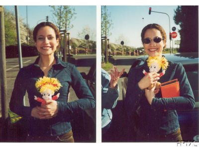 Und die waren sooo nett, weil die haben jeden erstmal nach ihren Namen gefragt, um jedes Autogramm mit Widmung zu schreiben, sie hätten ja auch einfach nur so die Unterschrift raufsetzen und das dann jedem in die Hand drücken können. Wir standen dann erstmal bei Kerstin und sie fragte uns erstmal wie wir die Tanzszenen von ihr in VL fanden und wir haben halt gesagt, dass wir die gut fanden. Und irgendjemand neben uns hat sie auch gefragt, woher sie so gut tanzen kann, dann erzählte sie, dass sie bis sie 11 Jahre alt war, Ballett gemacht hat, aber damit aufhörte, weil's ihr zu langweilig wurde. Danach hat sie erzählt, dass sie dann Tanzmariechen gemacht hat bis sie 19 Jahre alt war. Sie erzählte auch, dass viel von den Tanzszenen aus VL raus geschnitten wurde, und dass sie viel mehr tanzen musste, als eigentlich zu sehen war...ja, und dann waren wir ja schon ganz happy...und da meinte Kerstin noch so zu Chrissy "Brauchst du ein Foto???" und sie hatte ja total vergessen, das sie einen Fotoapparat in der Hand hatte und Chrissy so "Oh, danke, dass du mich erinnerst, das wäre super" und dann hat Kerstin den Apparat so vor sie beide gehalten und geknipst...und meinte dann so "hoffentlich wird das was, ne??" und Chrissy meinte dann so "Kannst du auch ein Foto mit meiner Freundin machen??" und dann hat sie noch so eins mit Svenda gemacht...und wir haben uns erstmal ganz happy aus der Menge geschlingelt...*gg*