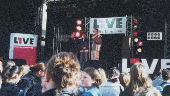 Am Freitag, den 27.09.02 ist für mich ein langersehnter Traum endlich in Erfüllung gegangen. Ich durfte meinen absoluten VL-Lieblingsschauspieler Christian Rudolf alias Guido Niermann hautnah und eine ganze Stunde lang auf dem Eins Live-Stadtfest in Siegen kennenlernen. Bei ziemlich trübem Wetter fuhr ich schon am frühen Morgen los. Und das war auch gut so, denn ich hatte mich ziemlich oft verfahren, da der Plan von den WDR Studios in Siegen komplett falsch war. Und, nachdem ich einen Riesenumweg gefahren war und später merkte, daß ich auch schon viel schneller hätte da sein können, bekam ich erstmal Panik. Die Veranstaltung sollte um 14:00 Uhr anfangen und ich bin um sage und schreibe 13:45 Uhr erst in Siegen angekommen. Halleluja, dachte ich. Eh, daß ich die Bühne dann noch finden würde, wäre eh alles vorbei. Es war einfach eine Katastrophe! :-( Das einzig Positive war jetzt allerdings das Wetter. Mittlerweile herrschte strahlender Sonnenschein. Und dann ging die Sucherei der Bühnen los. Zuerst einmal konnte ich die Bühne gar nicht finden. Ich irrte immer zwischen den Bühnen hin und her, weil immer gesagt wurde, daß auf der Eins Live-Bühne nur Musikgruppen kamen. Und, dann kam noch dazu, daß keiner irgend Etwas wußte. Aber, ich merkte, daß auf keiner Bühne was los war. Und, da war es schon nach 15 Uhr. In der Oberstadt besorgte ich mir noch bei der Sparkasse ein Programmheft. Und, was mußte ich da feststellen? Da stand doch tatsächlich, daß am SONNTAG VL-Stars kommen sollten. Am Sonntag!!! Ich dachte, das kann doch alles nicht wahr sein! Ob die einen reinlegen wollten oder sich im Tag geirrt hatten? Resigniert ging ich wieder runter zur Eins Live-Bühne, weil ich dachte, wenn Christian überhaupt kommt, dann sicher dort. Weil im Programmheft was von "Megaparty" stand. Das war sozusagen meine letzte Hoffnung. Na ja. Es war einfach furchtbar. Der blanke Horror. Aber, ich dachte mir, das war ja schon öfters so, das VL-er zwischen solche Musikveranstaltungen genommen wurden. Also, blieb ich erstmal da. Um 15:15 Uhr ging es los. Die beiden Moderatoren erzählten, wer alles kommt. Und, plötzlich, endlich, das Licht am Ende des Tunnels: "Guckt einer von Euch "Verbotene Liebe"? Na, da wußte ich jedenfalls Bescheid, daß ich endlich richtig war. Und so blieb ich. Leider mußte ich mir fast 1 Stunde lang diesen unerträglichen Krach anhören. Das war wirklich eine Lautstärke, das könnt Ihr Euch gar nicht vorstellen. Ich mußte mir jedenfalls die Ohren zuhalten. Glücklicherweise kam dann ziemlich schnell Christoph Dostal auf die Bühne. Leider nur 5 Minuten. Mein Film ist leider ziemlich verwackelt und man sieht ihn schlecht, wegen der Lampen auf der Bühne und der Entfernung. Trotzdem, der Ton ist super geworden. Man kann also gut hören, was er sagt. Er sagte, daß er bald eine Lesung halten würde mit dem Titel "Der Knochenmann". Außerdem meinte er, auf die Frage: "Sprechen Dich die Leute denn auf der Straße auch an und denken, Du bist wirklich so böse?" "NEIN! Natürlich nicht!" Und, er erzählte noch von seiner Rolle in "Medicopter" und, daß er schon mit Steven Spielberg gedreht habe.