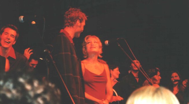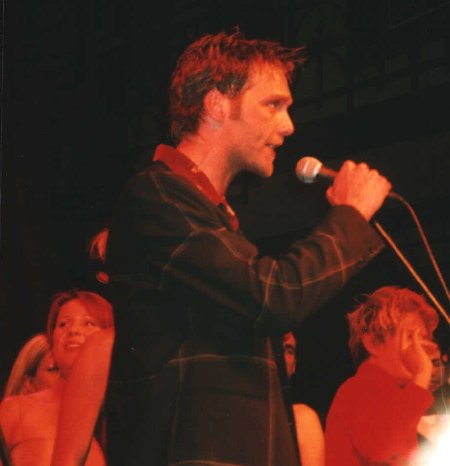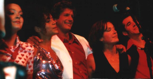 Dann kamen alle Schauspieler auf die Bühne und stimmten gemeinsam das "Verbotene Liebe"-Titellied an. Ich muß wirklich sagen, es klang total super und ich finde, dass gerade bei diesem Lied eine wunderschöne Stimmung in der ganzen Halle herrschte. Danach kam noch ein etwas Fetzigeres, und die Stimmung wurde immer besser und besser. Als die Fans nach den zwei Liedern "Zugabe" forderte, meinte Carsten, dass sie dieses Wort zwar unheimlich gerne hören, sie uns aber leider enttäuschen müßten, da sie leider nicht mehr können...