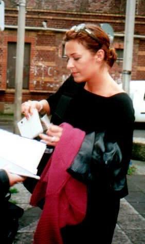 Freya war total lieb. Sie gab mir ein Autogramm. Ich soll das gesamte Forum von ihr gruessen! Dann waren alle weg und wir wollten schon gehen, als draussen Freyas Auto hinter der Kirche gesichtet wurde (Zuckerschlampe ist ganz ganz nah dran und hat sich doch tatsaechlich draufgesetzt..tststs!). Nach einer halben Stunde Warten (wir hatten herausgefunden, dass beide VL-Darsteller noch irgendwo in der Kirche waren) - kamen die beiden dann und wir belagerten sie mit Fragen und Fotoapparaten und Autogrammbuecher. Insgesamt ein sehr netter Moment. Als wir sie wieder freigelassen hatten, stiegen Kay und Freya ins Auto und suchten vergeblich den Ausweg aus der Parkecke hinter der Kirche! Richtig suess, wie sie da im Kreise ‘rumfuhren *kicher*.. Aber SJA war da und gab erloesende Anweisungen. Zufrieden und mit einem extra-grossen Grinsen (gell Kate?) ging’s dann nach Odenkirchen, wo wir uns mit den nicht-Krefeldern im Pavillon trafen. Das Essen dort war uebrigens vortrefflichissimo!