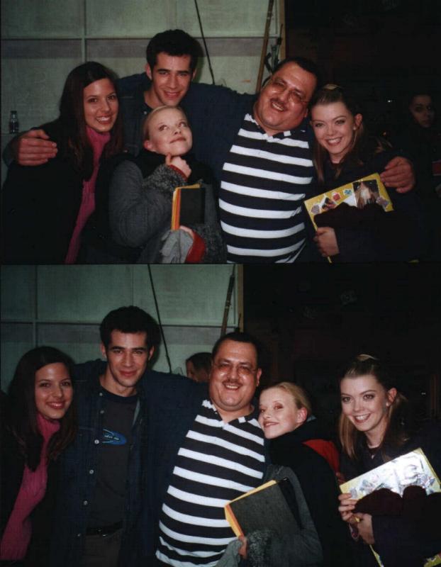 Anschließend (nach so ungefähr 1,5 Stunden) gingen wir dann zur Pressestelle, wo wir dann noch einmal Jo und später auch Kerstin trafen. Ein junges Mädchen (16) wurde zusammen mit mir herumgeführt, sie hatte den Setbesuch bei einer Schulfeier gewonnen. Sie ist auf dem Bild zu sehen, auf dem wir in Clarisas Wohung zusehen sind. Es war der schönste Tag dieses Jahres (außer dem Treffen mit Andreas Stenschke abgesehen). Ich freu mich immer noch sehr, wenn ich meine Erinnerungsbilder anschaue. Danken tue ich allen die es ermöglicht hatten. Es waren alle sehr freundlich. Wenn ich eine Skala anfertigen müßte, würde ich Angelo und Andreas an die Spitze stellen sie waren superfreundlich, von Daniela mal ganz abgesehen. Das heißt aber nicht das Jo, Kerstin und Karoline nicht nett sind, aber bei soviel Leuten muß man einen Anfang machen. Danke.