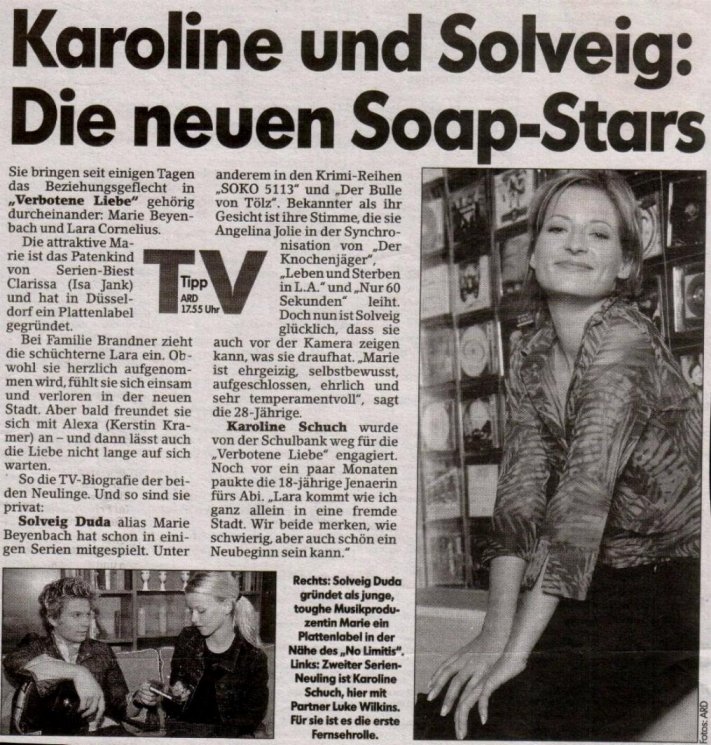 In der aktuellen Ausgabe der TV-Spielfilm, Heft 21/00, kann man lesen, was deutsche Fernsehzeitschriften von singenden Soapies halten...