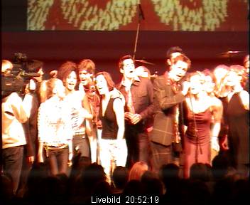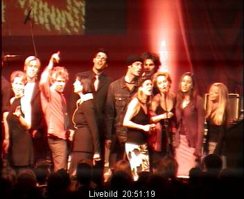 Kurz nachdem ich überglücklich in der Fischauktionshalle ankam (Hamburg ist einfach zu groß für meinen wenig ausgeprägten Orientierungssinn *g*), betraten auch die Schauspieler die "edel eingerichteten Räume" (gell, Brausetablette? ;-) ). Und -ihr werdet es nicht glauben - Andreas Potulski ist riiiiiiesig! Der kommt im TV wirklich kleiner rüber...Er überragte wich um fast zwei Köpfe!!!! Großes Highlight waren natürlich die VL-Singers...Ich bin der Meinung, Jo deutlich herausgehört zu haben, aber mein nachbar war der Meinung, dass es wohl eher Carsten wäre, der so schief sänge....*g* Sorry, ihr beiden... So, jetzt fällt mir erst mal nicht produktives mehr an und bevor ich nur noch Unsinn schreibe, hör ich jetzt lieber auf.