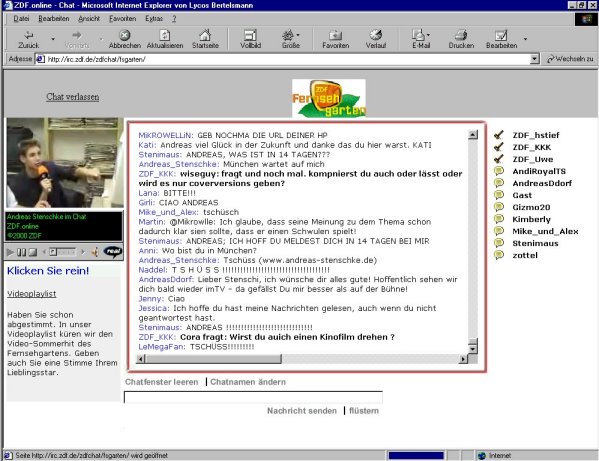 Lucki aus dem ARD-Forum fasst den ersten Teil von dem ZDF-Auftritt vom Ulli-Darsteller Andreas Stenschke am 9.8.2000 bei "Volle Kanne Susanne" zusammen: