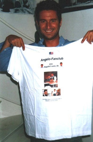 Viele Ideen hat er auch, wie wir seine Fanclub-Homepage (www.angelofranke.de) neu gestalten könnten. Bald wird es eine neue Angelo-Seite mit neuen Fotos und Infos geben! Er hat auch versprochen, in naher Zukunft wieder ein neues Interview mit eueren Fragen zu geben. Also, schickt euere Fragen an: stefan@angelofranke.de! Nachdem wir alles durchgesprochen hatten, nebenher über VL & andere Dinge diskutiert hatten, z.b. dass er immer noch regelmäßig mit Andreas Ulli Stenschke in seinem Karaoke-Studio singt, mussten wir uns wieder verabschieden. Der Frisör ruft. Angelo muss noch seine Wäsche auf die Wäscheleine hängen. Ein richtiger Hausmann eben.