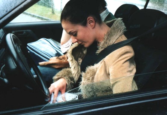 Diese Autonummer wurde sehnlichst herbeigewünscht von meinem sehr erzählfreudigen Fan und dann kam sie endlich in ihrem schwarzen Fiesta und schien ebenso glücklich wie wir! Linda fuhr sofort links rein und stieg aus.