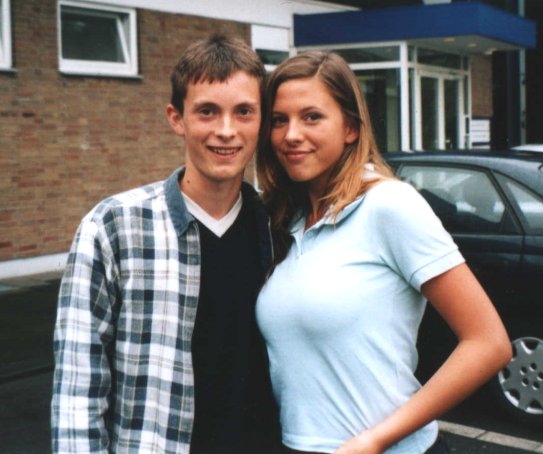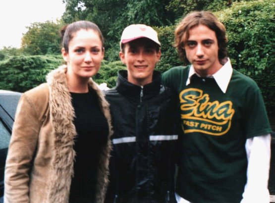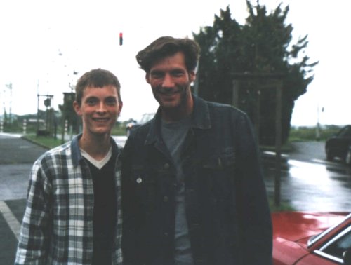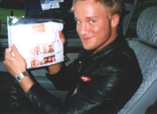 Da: Potulski - der hält nie. Und schon wurden wir vom Gegenteil überzeugt, das Auto blieb stehen und wir rannten gleich hin. Dominic (Andi) fuhr mit Andreas (Felix) aus dem Studio. Beide gaben uns freundlich Autogramme. Ich überreichte Dominic das Wahl-Gewinner-Shirt für den Cliff2002, Satz2002 und 2.Platz bei der Darsteller-Wahl. Er war sehr davon begeistert, bedankte sich bei mir per Handschlag und war stolz auf sein Geschenk: