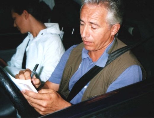 Und da fährt er auch schon vor: Gerry Hungbauer. Er bleibt zwar im Auto sitzen, trotzdem erfüllt er unsere Autogramm- und Fotowünsche. Dass er tatsächlich Jahrgang 1961 sein kann, können wir nun auch bestätigen.
