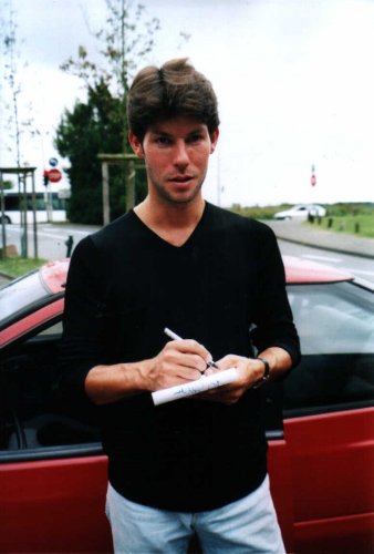 Sehr nett, fährt freiwillig auf den Parkplatz, plaudert wie ein Kumpel mit uns, erzählt uns von seinen Problemen. "Ich komme bei den Fans noch nicht so gut an", worüber er sehr traurig ist. Als sogenannter Recast hat man es eben nie leicht. Aber er kämpft dafür und zeigt sich für uns von seiner besten Seite. Gibt ihm eine Chance...