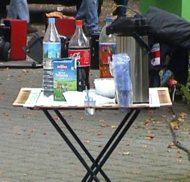 Der Verbotene Liebe-AD-Verpflegungstisch: Hier gibt es Getränke und kleine Snacks für die Crew.