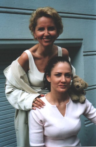 Gabriele und Yvonne in einer Pause. Das Maskottchen von Gabriele ist immer bei den Dreharbeiten dabei und darf auch aufs Bild, schließlich soll es auch schon mal in VL zu sehen gewesen sein...